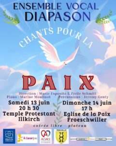 Sous les Directions de Marie Esposito & Zivile Schmitt, l’ensemble vocal Diapason vous convie à leur concert « Chants pour la Paix ».